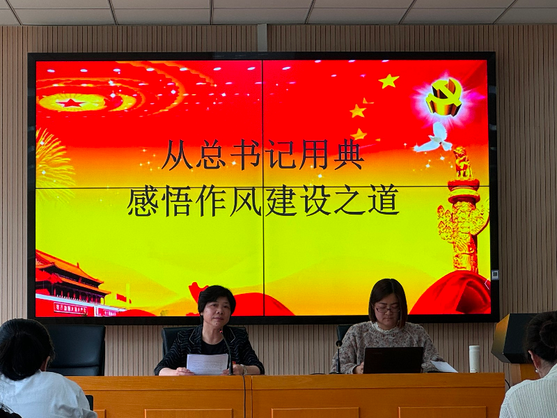 党支部书记戴红聚焦习近平总书在关于党的作风建设的重要论述中的用典,和党员老师们分享作风建设之道,开展“习语用典”解码学习活动。戴书记从“徙木立信”“霸王别姬”“奢靡之始,危亡之渐”“善禁者,先禁其身而后人”“尽小者大,慎微者著”“见善如不及,见不善如探汤”“不能胜寸心,安能胜苍穹”“临渊羡鱼不如退而结网”等9条作风建设金句,跟党员老师们剖析加强党的作风建设重在:取信于民、有危机意识、防微杜渐、以身作则、保持定力、正心养性、涵养品德。戴书记在娓娓道来中,让党员老师们在传统文化的浸润中提升了党性修养,领悟到作风建设的真谛。