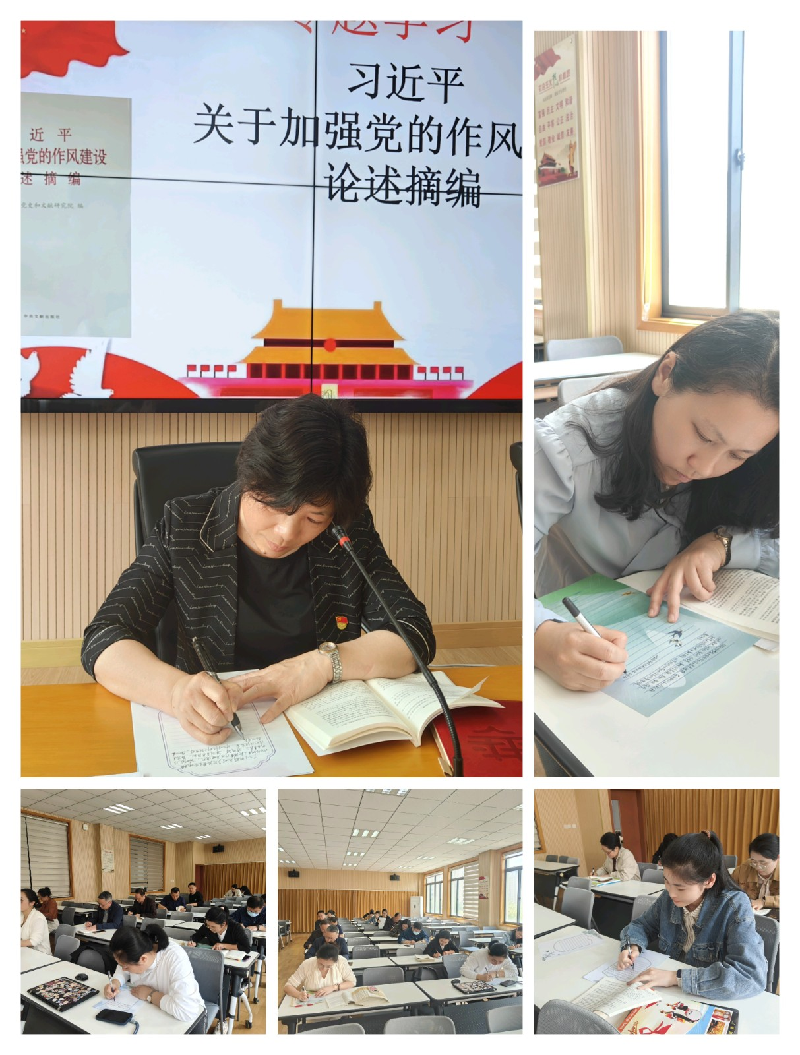 接着,党员老师们自行研读《习近平关于加强党的作风建设论述摘编》,并摘录其中重要语段,读中悟,写中思,实现学习教育入脑入心。