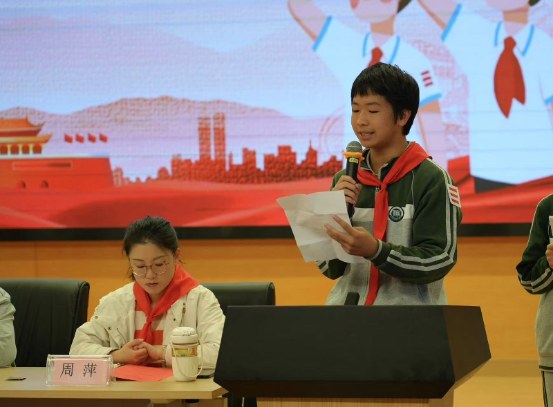 党支部委员、副校长徐玮老师代表学校少工委致辞。徐老师对本次少代会的胜利召开表示热烈祝贺,同时她也用充满关怀的话语向少先队员代表们提出了新阶段的目标,希望少先队员们在日常生活中、在学习之余,积极参与到少先队的各项活动中,通过劳动与实践,培养自己吃苦耐劳的精神,通过创新与探索,提升自己解决问题的能力。期待队员们在队组织的怀抱中锻炼能力、展现才华,牢记党的嘱托,不负时代使命,用实际行动去书写自己的精彩人生。