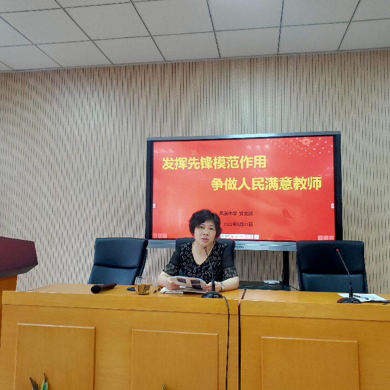 2022年8月31日上午,凤溪中学全体党员齐聚C楼教师会议室开展主题党日活动,本次活动的主题为“喜迎二十大,奋进新征程”,由支部委员安黎黎主持。