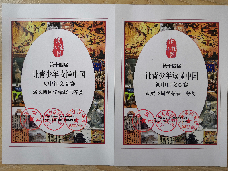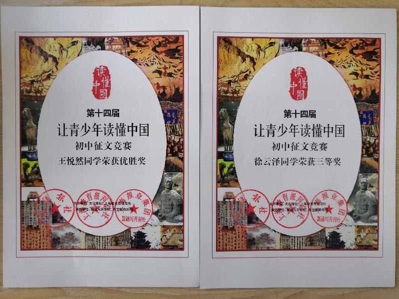 在由文汇报社、上海教育报刊总社举办的第十四届让青少年读懂中国初中征文竞赛中,凤溪中学很多同学积极参与,其中有多位同学获得理想的成绩,学校荣获优秀组织奖!祝贺获奖学生和指导老师!