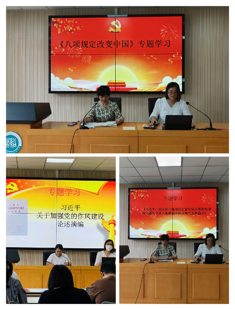 党支部书记戴红带领全体党员学习 《八项规定改变中国》、《党的十八大以来深入贯彻中央八项规定的成效和经验》以及总书记在河南考察工作时的重要讲话精神和在《求是》发表的重要文章;党支部副书记安黎黎带领全体党员学习《习近平关于加强党的作风建设论述摘编》第4、5、6章。通过持续学习,筑牢党员思想根基。