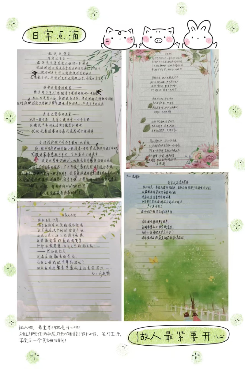 本次比赛以教材第一单元诗歌为仿写蓝本,同学们积极响应、踊跃参与。大家紧扣原作的韵律节奏、结构特点与表现手法,或模仿经典诗作的意境抒发青春感悟,或借鉴独特的诗歌形式描绘校园生活,或依托相似的抒情视角表达对家国情怀的思考。参赛作品既保留了原作的韵味,又融入了个人独特的体验与创意,展现出同学们对诗歌艺术的深刻理解和灵活运用能力。