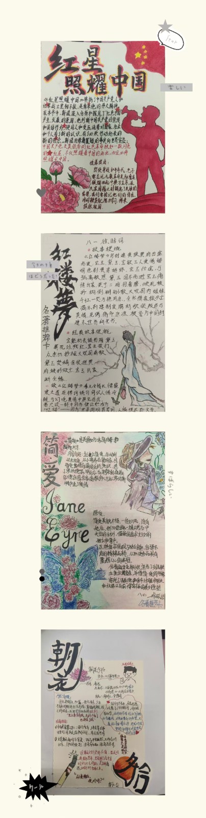 此次活动以“动手实践”激活“阅读兴趣”,将名著阅读从“被动接受”转化为“主动传播”,既锻炼了学生的文字表达与审美创作能力,又营造了“人人读经典、人人谈经典”的校园书香氛围。未来,语文组将持续开展此类特色活动,让经典文学真正走进学生心中,成为滋养成长的精神养分。