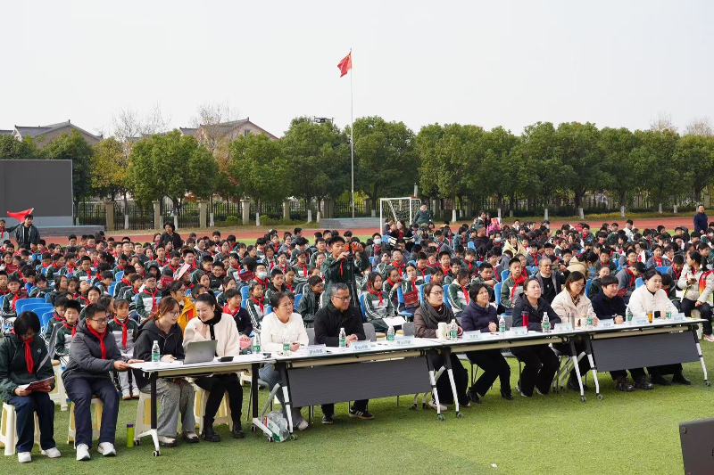 2025年12月5日下午,备受期待的校园红歌合唱赛在操场舞台正式拉开帷幕。全校六至九年级共20个中队齐聚一堂,用嘹亮歌声致敬峥嵘岁月,用赤诚之心唱响强国梦想。活动特邀党支部书记校长戴红老师、副校长徐玮老师、副校长周慧兰老师、副书记安黎黎老师、青浦区合唱“一条龙”专家王雨童老师、熊玉荣老师、龚少华老师、校家委会委员八4中队祁麟蕊家长张丽英、校家委会委员七5中队汤舒涵家长汤爽作为评委全程参与,本次活动由七3中队张越队员和曹果队员主持。