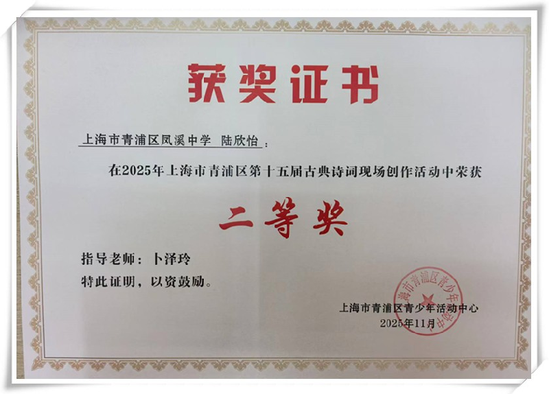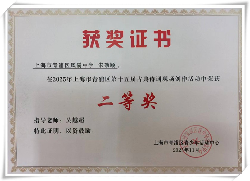 第十五届古典诗词现场创作活动(青浦赛区)获奖喜讯