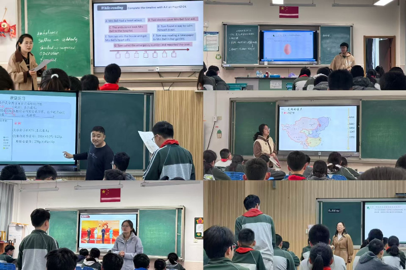课堂内容丰富多样,聚焦核心素养的培育。从语文课的经典篇目品读《阿长与〈山海经〉》《卖油翁》《别了,语文课》,到数学课《数据的收集、整理与表达》的逻辑思维训练;从英语阅读课《Rainbow in a cloud》的语言能力提升,到历史课《元朝的建立与统一》、地理课《辽阔的北方大地——黄土高原地区》的综合素养拓展,再到道德与法治课《法律保障生活》、生物课《生物的有性生殖》的科学探究与价值观引领,每一堂课都体现了青年教师对教学目标、学生主体地位以及现代教学手段运用的深入思考。