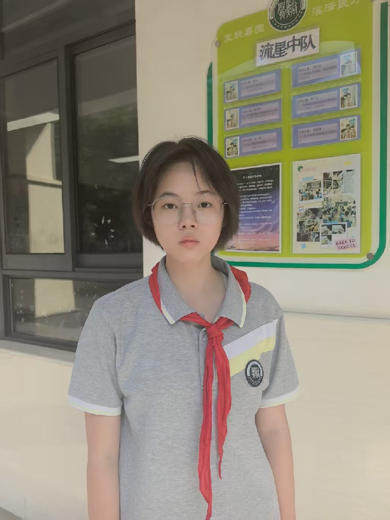 袁思琪队员是八5流星中队的中队长。课堂上,她专注听讲、积极思考;课后,她认真完成每项作业,善于总结,不断进取。她尊敬每一位老师,工作负责,是非分明,谦和自律,如一缕春风般让身边的人感到温暖清新。