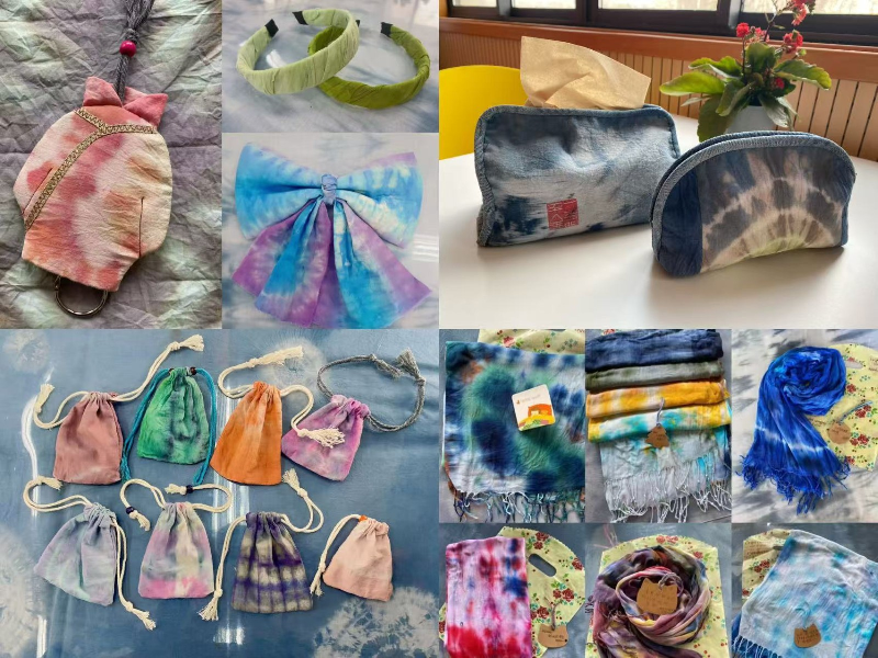 当白色的棉布在成员们手中被巧妙地折叠、捆扎,再浸入色彩浓郁的染缸,等待、取出、拆线,随着布料逐渐展开,一幅幅如梦如幻的图案跃然眼前。有的像绽放的烟花,有的似流动的云彩,还有的如神秘的星空。那晕染的色块、自然的纹理,仿佛诉说着古老的故事,又充满了现代的艺术气息。无论是制作一条个性的围巾,还是设计一件独一无二的 T恤,扎染总能赋予平凡布料新的生命。