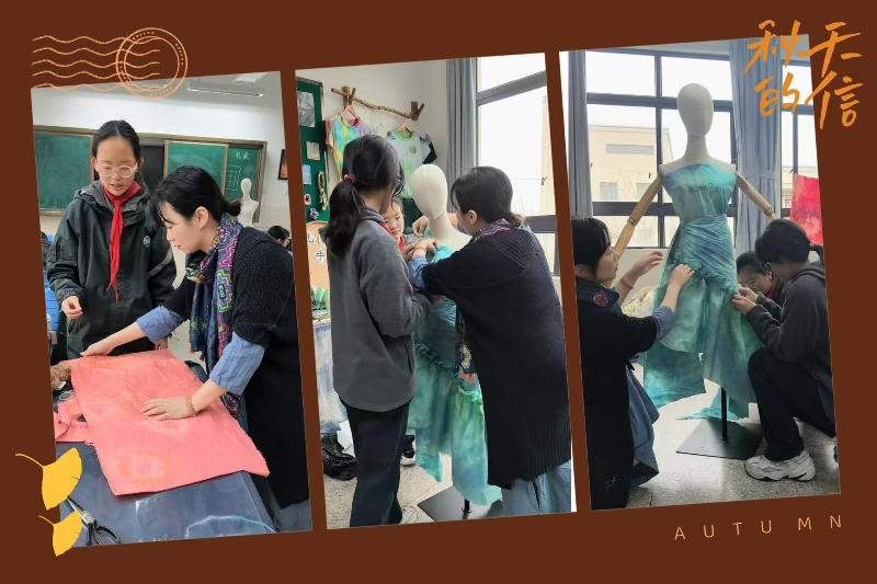我校的金培新老师担任扎染社团的执教导师。金老师毕业于东华大学服装设计与工程专业,作为国内纺织服装领域顶尖学府的毕业生,金老师凭借扎实的专业积淀,对传统手工艺的材料、技法与创新应用有着深刻见解。