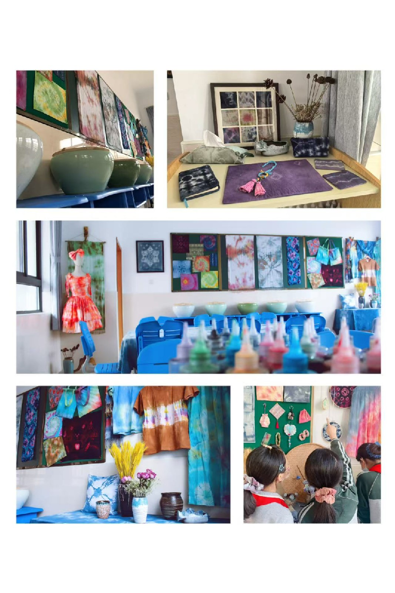 在这里,同学们可以全身心投入扎染创作。宽敞明亮的空间提供了充足的光线,方便观察布料的染色情况;通风良好的环境让染料的气味迅速散去,营造舒适的创作氛围。无论是社团活动时的集体创作,还是课余时间的个人探索,扎染教室都见证着每一块布料的蜕变之旅。