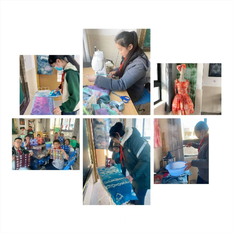 扎染社团成立以来,成员们的创意成果以多元形式点亮校园。在每学年的校队员展示月活动中,学生模特身着社团原创的扎染裙装、T恤登上舞台——靛蓝与明黄交织的裙摆随步伐流转,如泼墨山水般晕染的T恤彰显个性,每一件服饰都是行走的艺术画布,引得台下师生纷纷驻足赞叹。