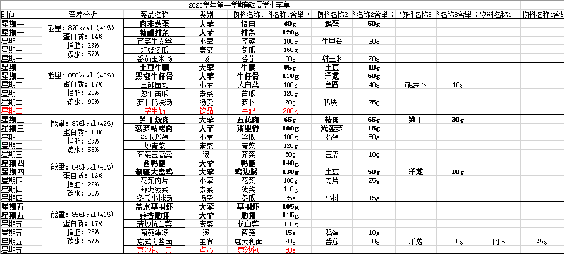 2025学年第一学期第2周学生菜单公示