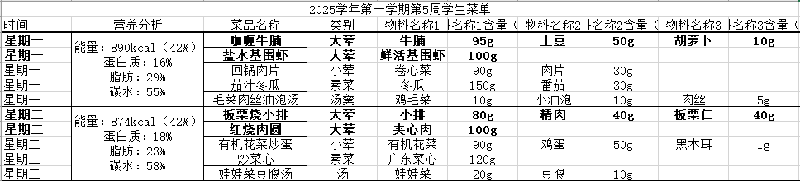 2025学年第一学期第5周学生菜单公示