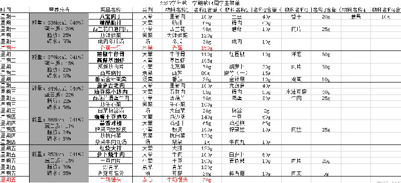 2025学年第一学期第14周学生菜单公示