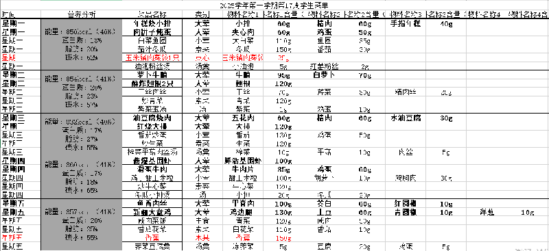 2025学年第一学期第16周学生菜单公示