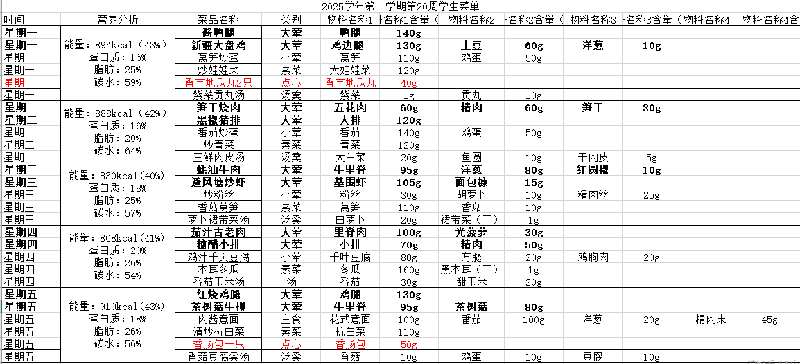 2025学年第一学期第20周学生菜单公示