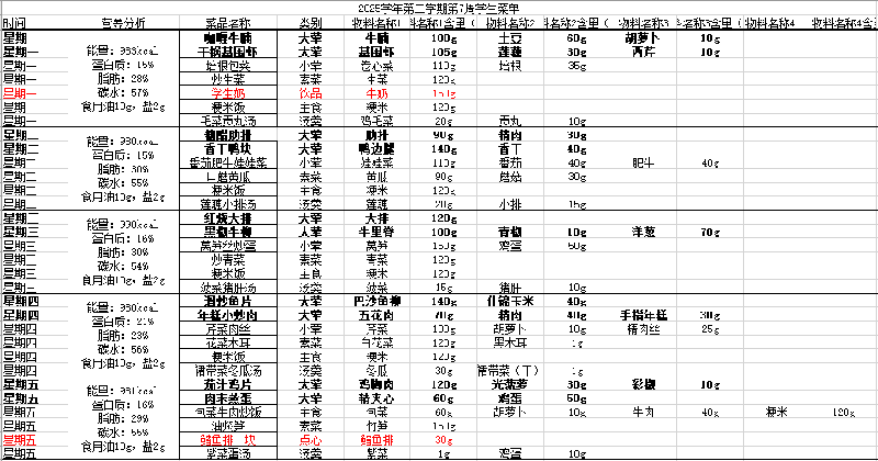 2025学年第二学期第7周学生菜单公示